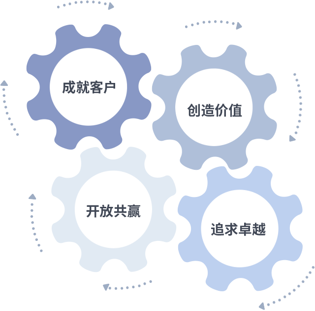 成就客户是一切决策的出发点,创造价值是衡量所有工作的标准,追求卓越是JJB竞技宝做事做人的态度,开放共赢是JJB竞技宝的格局也是最终的结果。价值观的齿轮环环相扣,推动着组织里的每个人不断向前。